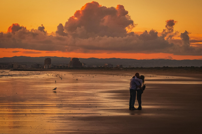 바다와 산, 해가 어우러진 조용한 풍경은 연인의 마음을 차분하게 만들어 줍니다.